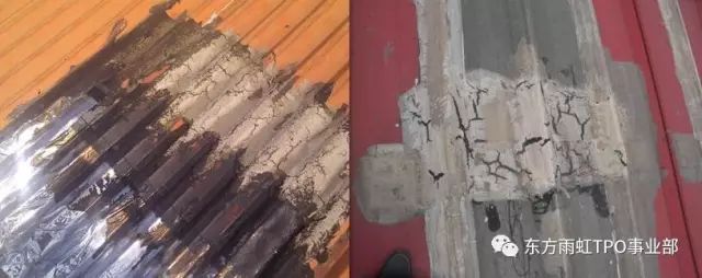 大量的失效案例证明,采用此两种材料的维修方案不能一劳永逸的解决金属屋面的渗漏问题,往往陷入“修完就漏,漏完再修”的循环。