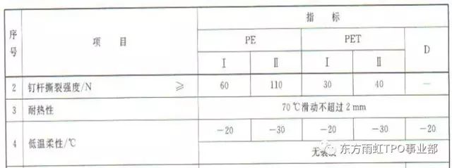 根据《自粘聚合物改性沥青防水卷材》GB23441-2009的规定,自粘卷材的耐热性和低温柔性规定如下表: